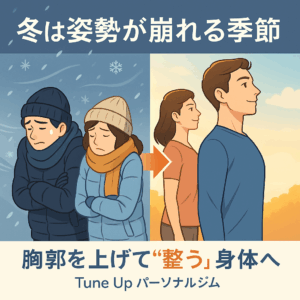 構造的反応が同時に起きている――これが冬に姿勢が崩れやすい大きな原因です。
