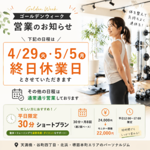 ゴールデンウィーク営業案内|天満橋パーソナルジム