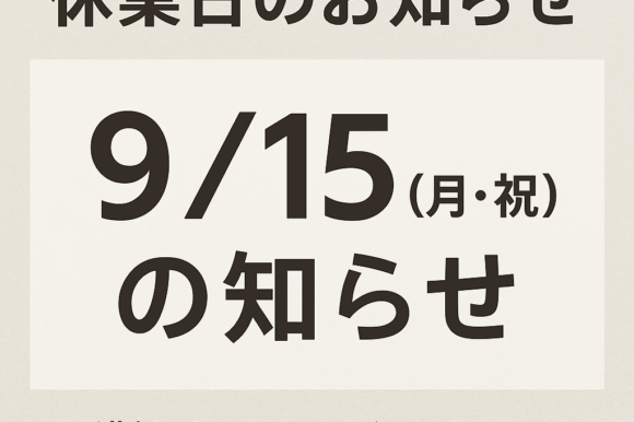 9/15(月・祝)休業日のお知らせ|天満橋パーソナルジムTune Up